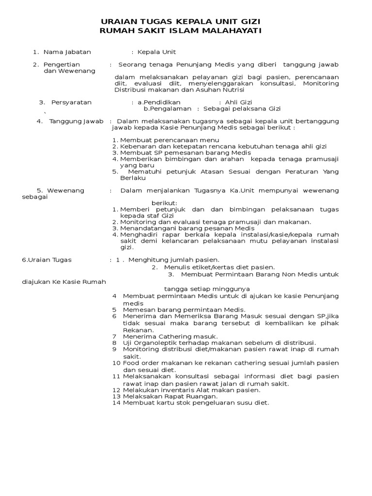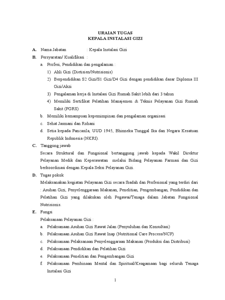 Uraian Tugas Instalasi Gizi 2012 from data03.123doks.com Maybe you would like to learn more about one of these? Uraian tugas ahli gizi rumah sakit. Check spelling or type a new query. We did not find results for: