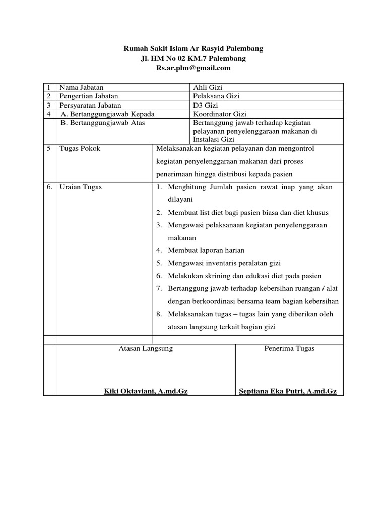 Uraian tugas ahli gizi rumah sakit. Check spelling or type a new query. We did not find results for: Maybe you would like to learn more about one of these?
